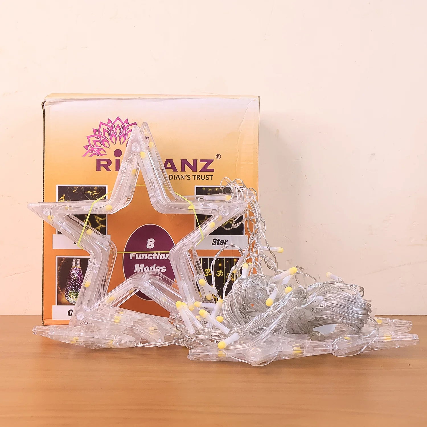 12 Star LED Curtain String Lights | 8 Mode Window Decoration for Diwali, Wedding & Christmas (Warm White)