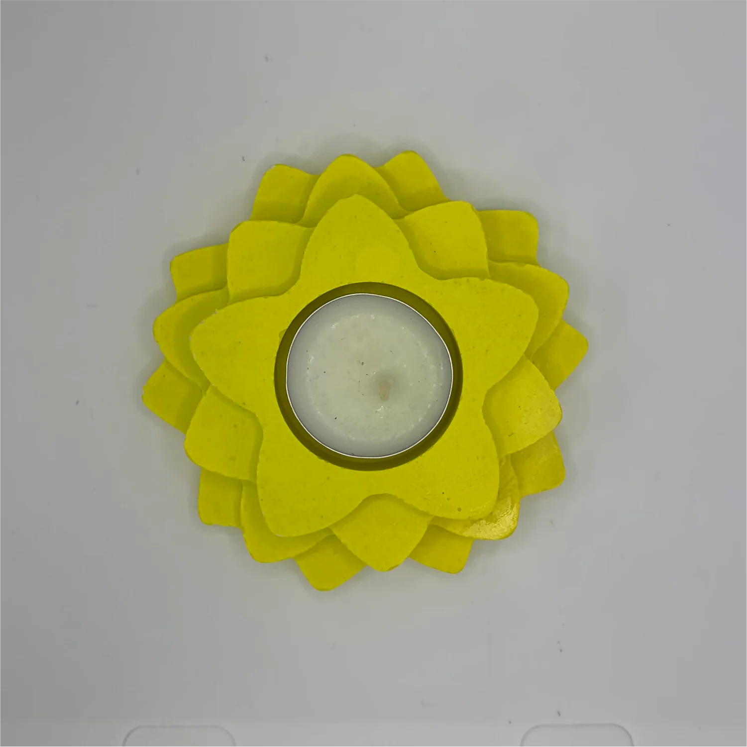 Handmade 4-Layer Flower Diya Tea Light Holder (Yellow) | Elegant Decorative Candle Holder for Home & Festivals