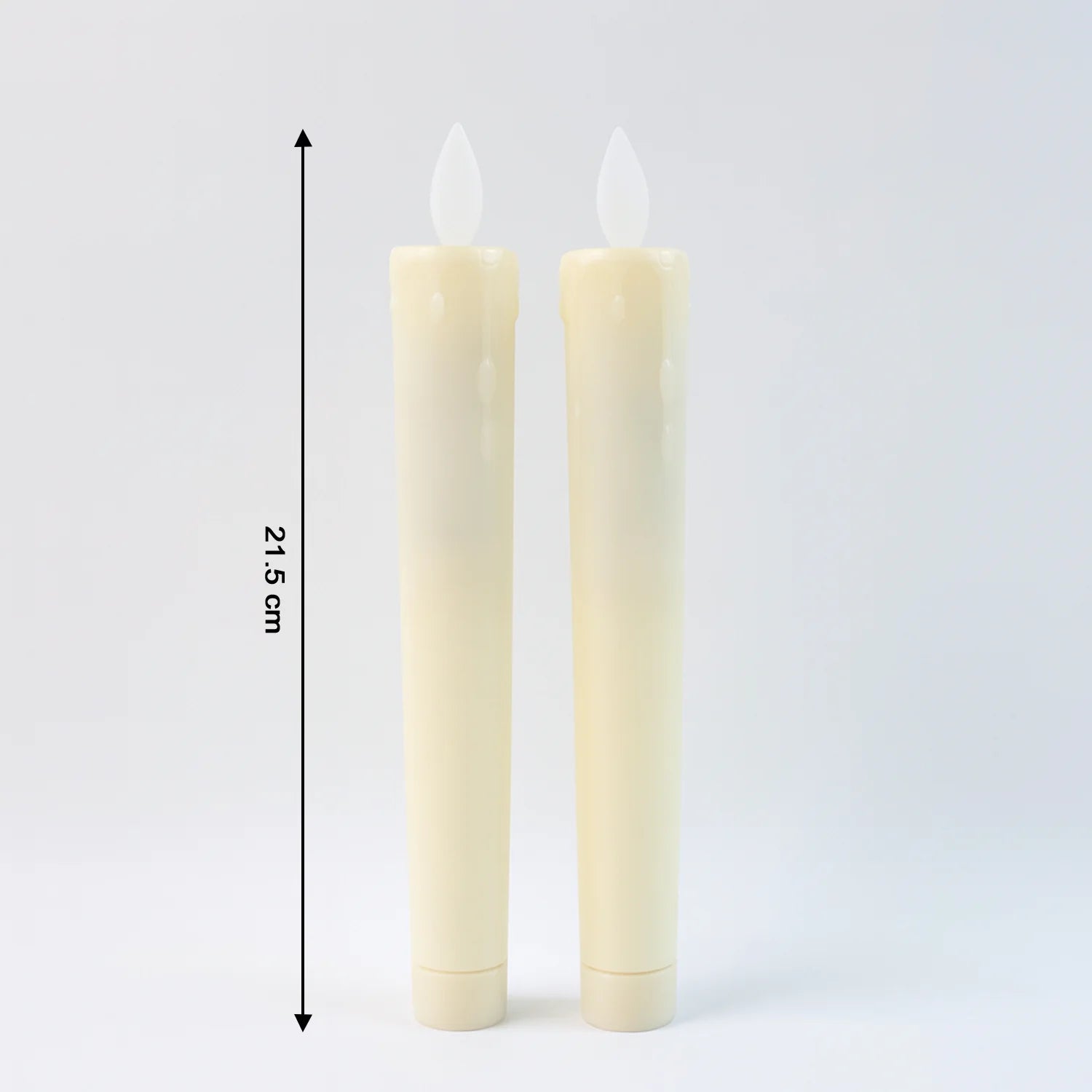 Set of 2 LED Flameless Taper Candles | Realistic Flickering Electronic Candle Lights for Home Décor, Pooja & Weddings