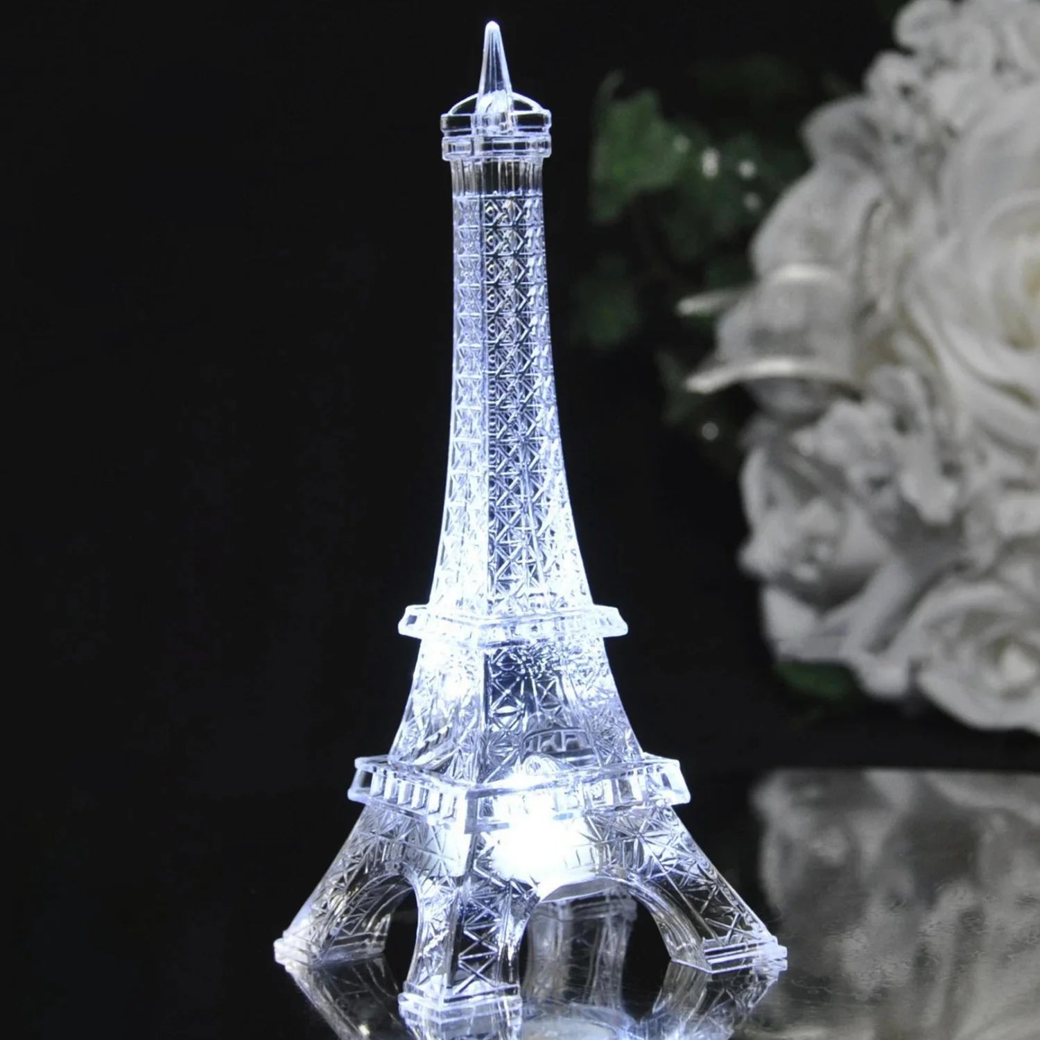 Iconic Design: An elegant, miniature Eiffel Tower replica with a premium crystal-effect finish that adds a touch of worldly sophistication.